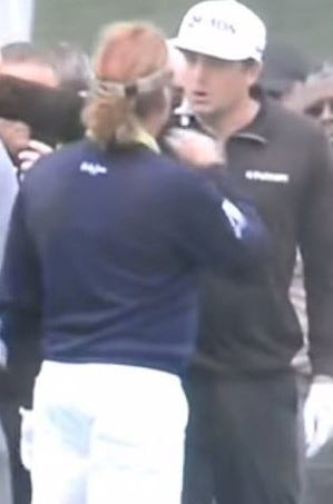 It was Bradley’s caddie, Steven (Pepsi) Hale, that said something to Jiménez as he queried Bradley’s drop from a cart path. He really shouldn’t have done that. Jiménez tells Hale to “shut up”. He probably shouldn’t have done that. Bradley then gets involved saying Jiménez shouldn’t have told his caddie to shut up. Fair play to Bradley for sticking up for his caddie but, again, he probably shouldn’t have done that.