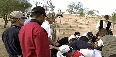 3. After the rock has been moved a few feet, Woods shakes everyone’s hand. Somewhere in Arizona (probably), there are a few men still telling the story of how they moved a boulder for Tiger Woods.